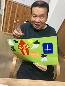 毎日、ハロウィンの飾りを、制作の時間に利用者の皆さんと一緒に考え、「これ可愛い」と声を掛け合い、
