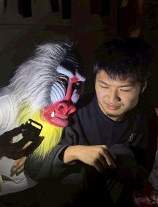 「トリックオアトリート」と話かけるとお菓子がもらえます。
