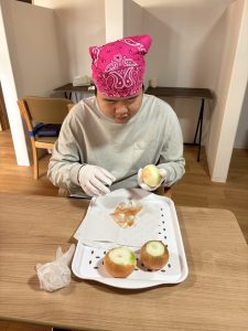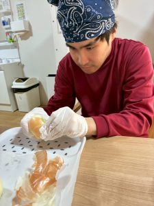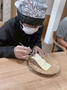 パイ生地をフォークでくっつける工程も、利用者様それぞれが自分のペースで進めて下さいました♪