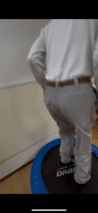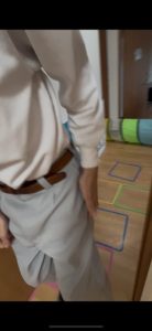 枠の中をリズムよく跳ぶ「けんけんぱ」もあります。なかなか片足立ちで跳ぶのは難しいですが、皆さま何とか飛ぼうと身体全体を動かされていました。