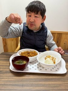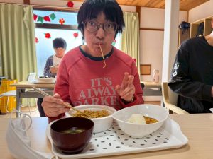 職員はお湯をわかし3分待ち、ソースや粉末を入れてと慌ただしかったですが