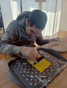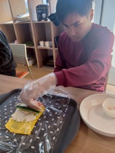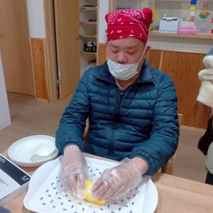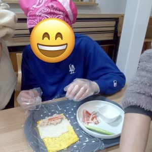 自身で作った恵方巻を美味しそうに食べて笑顔も見られました♪