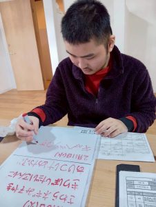 ホワイトボードに献立表を書かれている様子です(^^)/