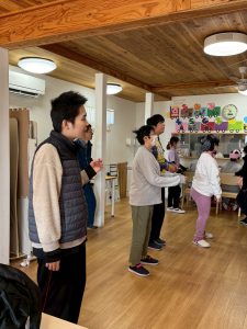 朝は朝礼から始まり体操をします!朝から身体を動かして元気に動けるように起こしていきます!