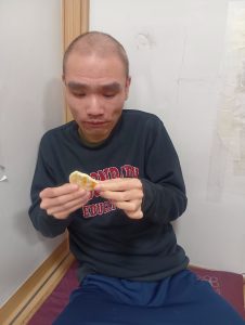 本日は、グループホームの余暇時間に少しですが、おやつを食べていただくことがあり、そのご様子となります(^^)